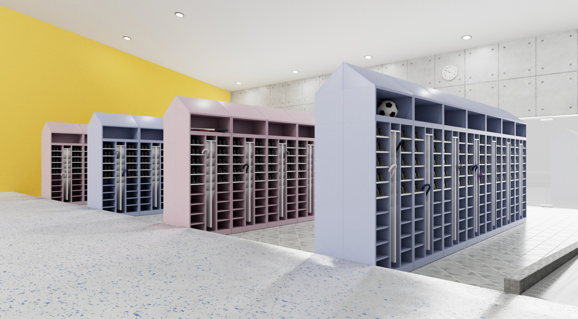 高校生が考えたアイデア満載の傘立て付きシューズロッカー。